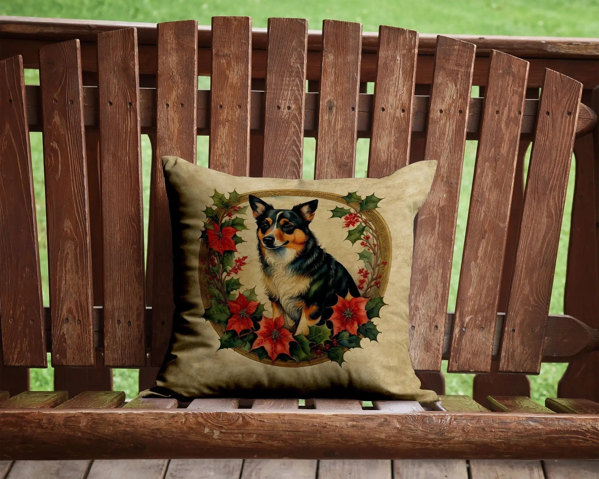 Lancashire Heeler Christmas Flowers Throw Pillow